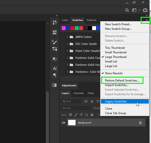 clear color swatches in photoshop