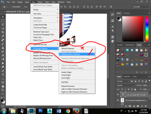to write urdu and arabic in photoshop cs6