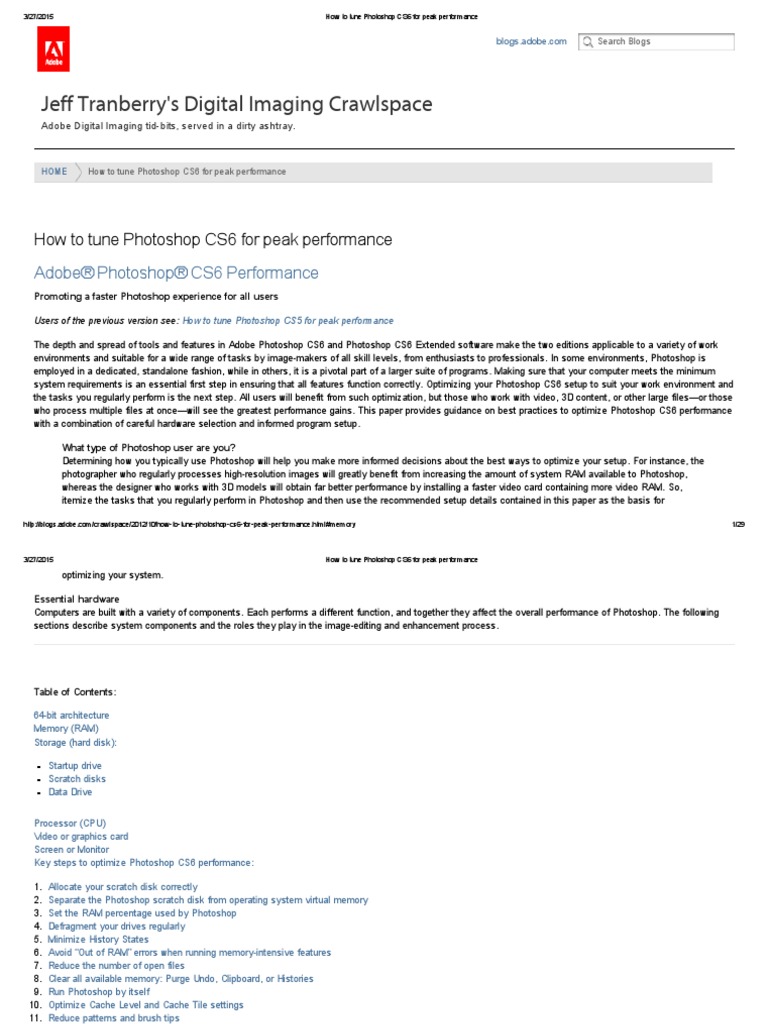 adobe photoshop cs6 memory optimization