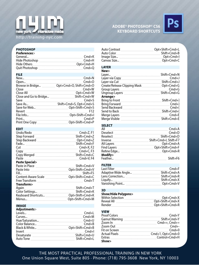 photoshop keyboard shortcuts cheat sheet