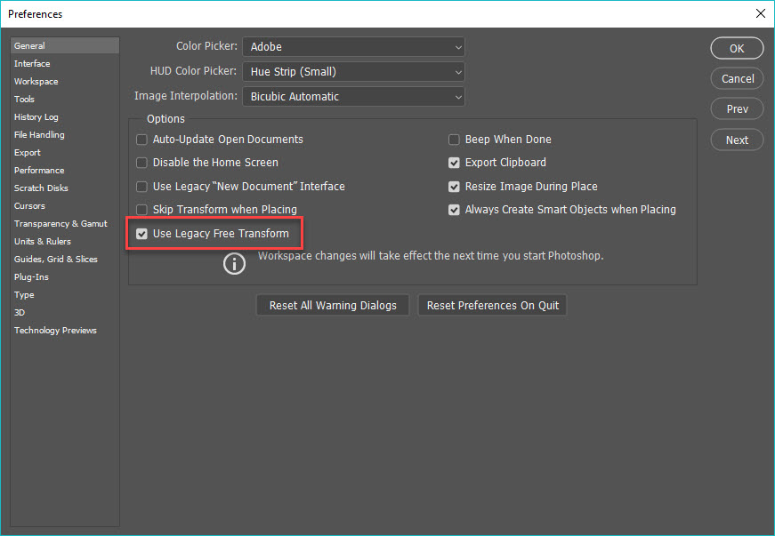 free transform behavior in photoshop