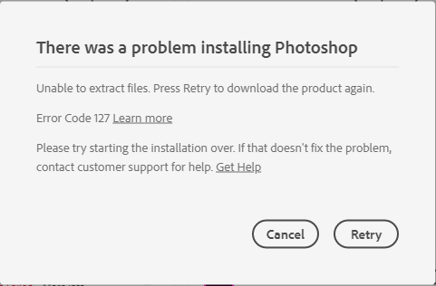adobe software installation error 127