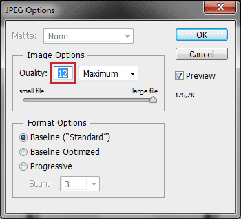 image format baseline jpeg vs