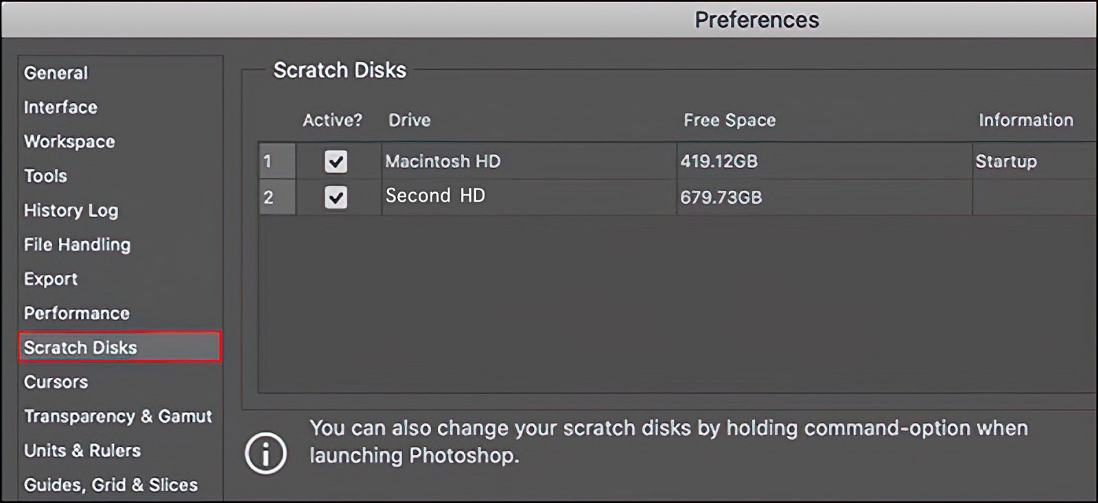 scratch disk without opening photoshop