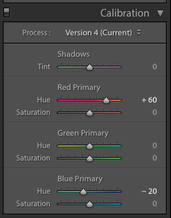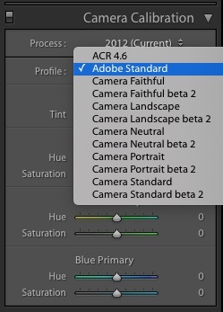 camera calibration panel in lightroom