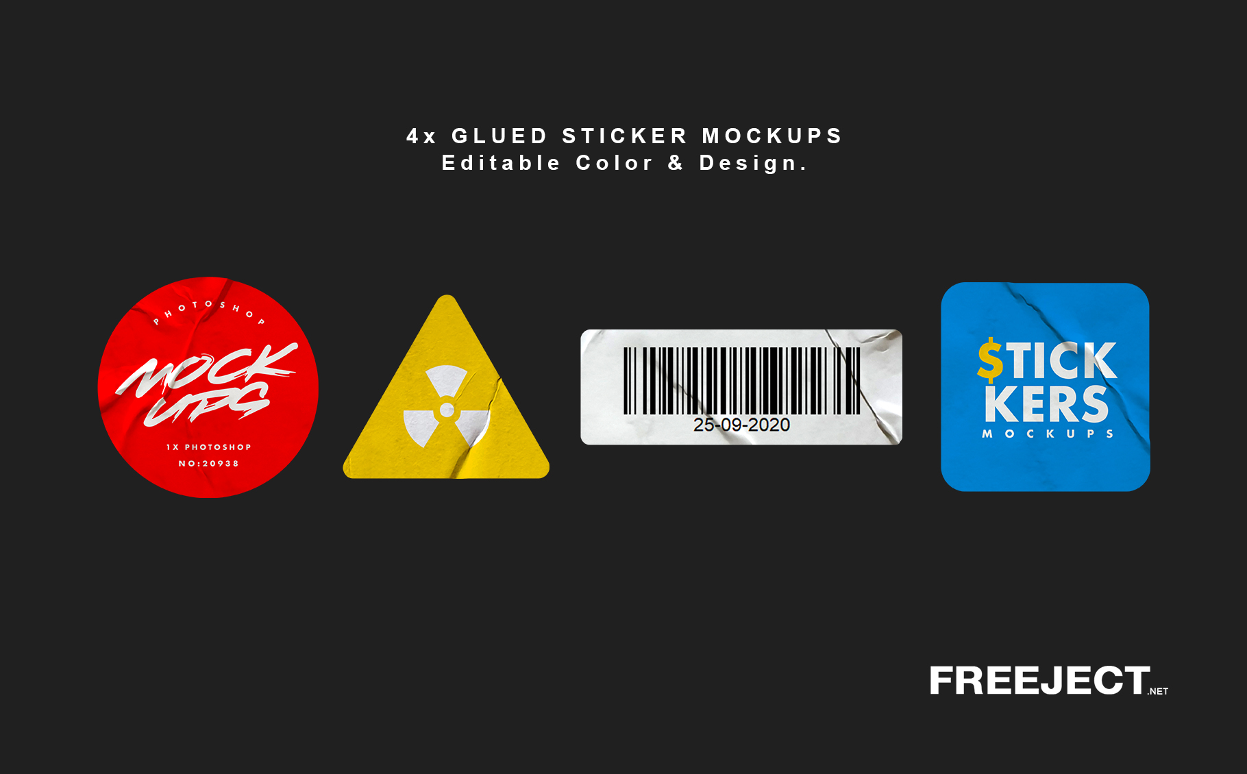 4 glued sticker mockups photoshop file